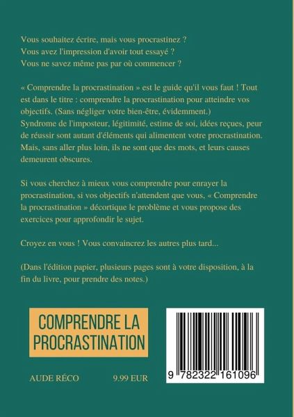 Si vous cherchez à mieux vous comprendre pour enrayer la procrastination, si vos objectifs n'attendent que vous, "Comprendre la procrastination" décortique le problème et vous propose des exercices pour approfondir le sujet.