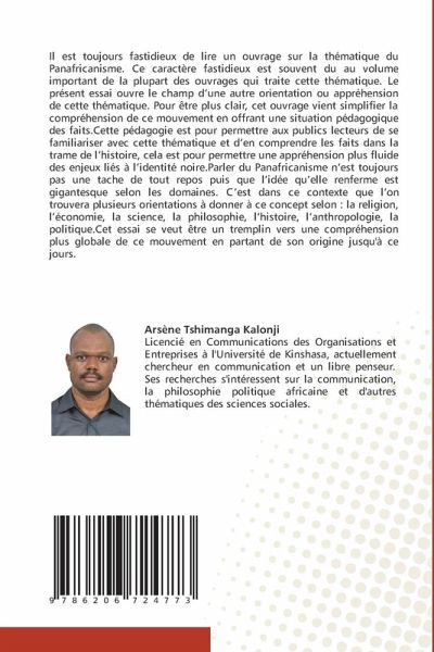 Il est toujours fastidieux de lire un ouvrage sur la thématique du Panafricanisme. Ce caractère fastidieux est souvent du au volume important de la plupart des ouvrages qui traite cette thématique. Le présent essai ouvre le champ d'une autre orientation ou appréhension de cette thématique. Pour être plus clair, cet ouvrage vient simplifier la compréhension de ce mouvement en offrant une situation pédagogique des faits.Cette pédagogie est pour permettre aux publics lecteurs de se familiariser avec cette thématique et d'en comprendre les faits dans la trame de l'histoire, cela est pour permettre une appréhension plus fluide des enjeux liés à l'identité noire.Parler du Panafricanisme n'est toujours pas une tache de tout repos puis que l'idée qu'elle renferme est gigantesque selon les domaines. C'est dans ce contexte que l'on trouvera plusieurs orientations à donner à ce concept selon : la religion, l'économie, la science, la philosophie, l'histoire, l'anthropologie, la politique.Cet essai se veut être un tremplin vers une compréhension plus globale de ce mouvement en partant de son origine jusqu'à ce jours.