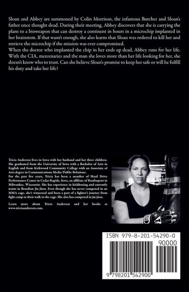 Sloan and Abbey are summoned by Colin Morrison, the infamous Butcher and Sloan's father once thought dead. During their meeting, Abbey discovers that she is carrying the plans to a bioweapon that can destroy a continent in hours in a microchip implanted in her brainstem. If that wasn't enough, she also learns that Sloan was ordered to kill her and retrieve the microchip if the mission was ever compromised. When the doctor who implanted the chip in her ends up dead, Abbey runs for her life. With the CIA, mercenaries and the man she loves more than her life looking for her, she doesn't know who to trust. Can she believe Sloan's promise to keep her safe or will he fulfill his duty and take her life?