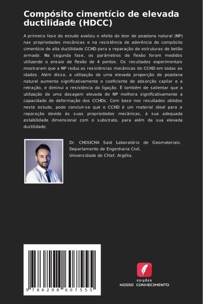 A primeira fase do estudo avaliou o efeito do teor de pozolana natural (NP) nas propriedades mecânicas e na resistência de aderência do compósito cimentício de alta ductilidade CCHD para a reparação de estruturas de betão armado. Na segunda fase, os parâmetros de flexão foram medidos utilizando o ensaio de flexão de 4 pontos. Os resultados experimentais mostraram que a NP reduz as resistências mecânicas do CCHD em todas as idades. Além disso, a utilização de uma elevada proporção de pozolana natural aumenta significativamente o coeficiente de absorção capilar e a retração, e diminui a resistência da ligação. É também de salientar que a utilização de uma dosagem elevada de NP melhora significativamente a capacidade de deformação dos CCHDs. Com base nos resultados obtidos neste estudo, pode concluir-se que o CCHD é um material ideal para a reparação devido às suas propriedades mecânicas, à sua adequada estabilidade dimensional com o substrato, para além da sua elevada ductilidade.