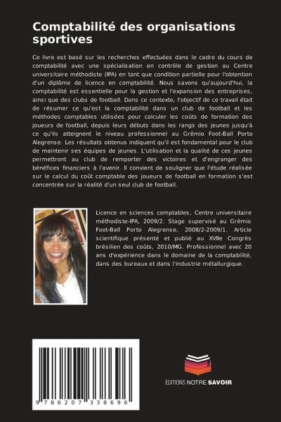 Ce livre est basé sur les recherches effectuées dans le cadre du cours de comptabilité avec une spécialisation en contrôle de gestion au Centre universitaire méthodiste (IPA) en tant que condition partielle pour l'obtention d'un diplôme de licence en comptabilité. Nous savons qu'aujourd'hui, la comptabilité est essentielle pour la gestion et l'expansion des entreprises, ainsi que des clubs de football. Dans ce contexte, l'objectif de ce travail était de résumer ce qu'est la comptabilité dans un club de football et les méthodes comptables utilisées pour calculer les coûts de formation des joueurs de football, depuis leurs débuts dans les rangs des jeunes jusqu'à ce qu'ils atteignent le niveau professionnel au Grêmio Foot-Ball Porto Alegrense. Les résultats obtenus indiquent qu'il est fondamental pour le club de maintenir ses équipes de jeunes. L'utilisation et la qualité de ces jeunes permettront au club de remporter des victoires et d'engranger des bénéfices financiers à l'avenir. Il convient de souligner que l'étude réalisée sur le calcul du coût comptable des joueurs de football en formation s'est concentrée sur la réalité d'un seul club de football.