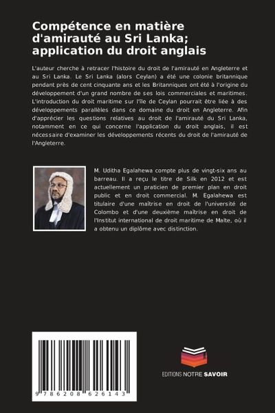 L'auteur cherche à retracer l'histoire du droit de l'amirauté en Angleterre et au Sri Lanka. Le Sri Lanka (alors Ceylan) a été une colonie britannique pendant près de cent cinquante ans et les Britanniques ont été à l'origine du développement d'un grand nombre de ses lois commerciales et maritimes. L'introduction du droit maritime sur l'île de Ceylan pourrait être liée à des développements parallèles dans ce domaine du droit en Angleterre. Afin d'apprécier les questions relatives au droit de l'amirauté du Sri Lanka, notamment en ce qui concerne l'application du droit anglais, il est nécessaire d'examiner les développements récents du droit de l'amirauté de l'Angleterre.