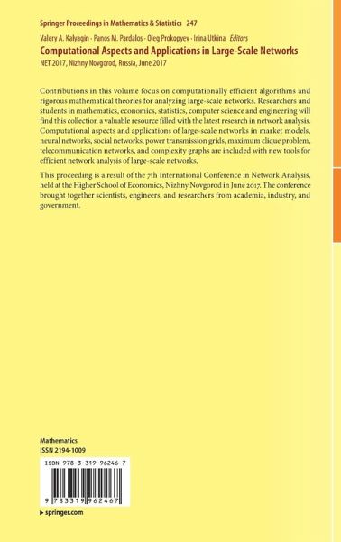 Contributions in this volume focus on computationally efficient algorithms and rigorous mathematical theories for analyzing large-scale networks. Researchers and students in mathematics, economics, statistics, computer science and engineering will find this collection a valuable resource filled with the latest research in network analysis. Computational aspects and applications of large-scale networks in market models, neural networks, social networks, power transmission grids, maximum clique problem, telecommunication networks, and complexity graphs are included with new tools for efficient network analysis of large-scale networks.