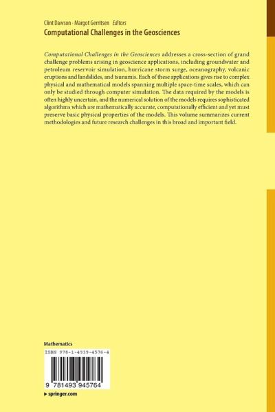 Computational Challenges in the Geosciences addresses a cross-section of grand challenge problems arising in geoscience applications, including groundwater and petroleum reservoir simulation, hurricane storm surge, oceanography, volcanic eruptions and landslides, and tsunamis. Each of these applications gives rise to complex physical and mathematical models spanning multiple space-time scales, which can only be studied through computer simulation. The data required by the models is often highly uncertain, and the numerical solution of the models requires sophisticated algorithms which are mathematically accurate, computationally efficient and yet must preserve basic physical properties of the models. This volume summarizes current methodologies and future research challenges in this broad and important field.