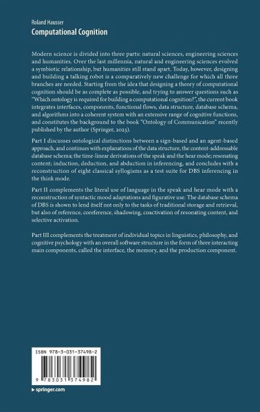 Modern science is divided into three parts: natural sciences, engineering sciences and humanities. Over the last millennia, natural and engineering sciences evolved a symbiotic relationship, but humanities still stand apart. Today, however, designing and building a talking robot is a comparatively new challenge for which all three branches are needed. Starting from the idea that designing a theory of computational cognition should be as complete as possible, and trying to answer questions such as "Which ontology is required for building a computational cognition?", the current book integrates interfaces, components, functional flows, data structure, database schema, and algorithms into a coherent system with an extensive range of cognitive functions, and constitutes the background to the book "Ontology of Communication" recently published by the author (Springer, 2023).