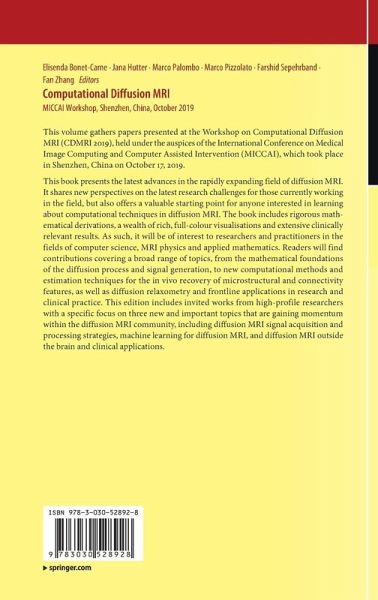 This book presents the latest advances in the rapidly expanding field of diffusion MRI. It shares new perspectives on the latest research challenges for those currently working in the field, but also offers a valuable starting point for anyone interested in learning about computational techniques in diffusion MRI. The book includes rigorous mathematical derivations, a wealth of rich, full-colour visualisations and extensive clinically relevant results. As such, it will be of interest to researchers and practitioners in the fields of computer science, MRI physics and applied mathematics. Readers will find contributions covering a broad range of topics, from the mathematical foundations of the diffusion process and signal generation, to new computational methods and estimation techniques for the in vivo recovery of microstructural and connectivity features, as well as diffusion-relaxometry and frontline applications in research and clinical practice. This edition includes invited works from high-profile researchers with a specific focus on three new and important topics that are gaining momentum within the diffusion MRI community, including diffusion MRI signal acquisition and processing strategies, machine learning for diffusion MRI, and diffusion MRI outside the brain and clinical applications.