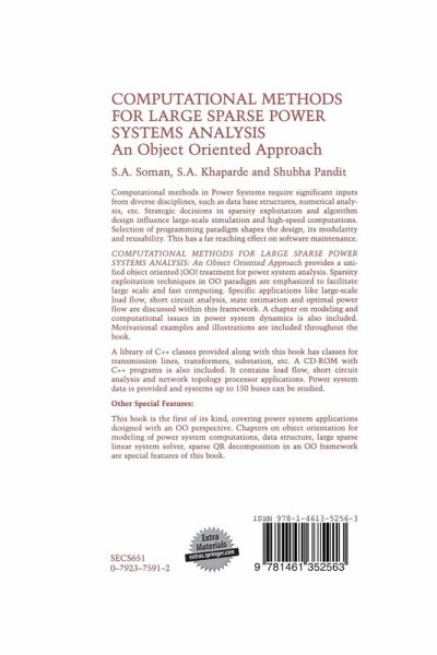 Computational Methods for Large Sparse Power Systems Analysis: An Object Oriented Approach provides a unified object oriented (OO) treatment for power system analysis. Sparsity exploitation techniques in OO paradigm are emphasized to facilitate large scale and fast computing. Specific applications like large-scale load flow, short circuit analysis, state estimation and optimal power flow are discussed within this framework. A chapter on modeling and computational issues in power system dynamics is also included. Motivational examples and illustrations are included throughout the book.