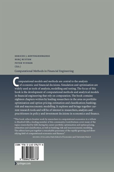 Portfolio Optimization and Option Pricing.- Threshold Accepting Approach to Improve Bound-based Approximations for Portfolio Optimization.- Risk Preferences and Loss Aversion in Portfolio Optimization.- Generalized Extreme Value Distribution and Extreme Economic Value at Risk (EE-VaR).- Portfolio Optimization under VaR Constraints Based on Dynamic Estimates of the Variance-Covariance Matrix.- Optimal Execution of Time-Constrained Portfolio Transactions.- Semidefinite Programming Approaches for Bounding Asian Option Prices.- The Evaluation of Discrete Barrier Options in a Path Integral Framework.- Estimation and Classification.- Robust Prediction of Beta.- Neural Network Modelling with Applications to Euro Exchange Rates.- Testing Uncovered Interest Rate Parity and Term Structure Using Multivariate Threshold Cointegration.- Classification Using Optimization: Application to Credit Ratings of Bonds.- Evolving Decision Rules to Discover Patterns in Financial Data Sets.- Banking, Risk and Macroeconomic Modelling.- A Banking Firm Model: The Role of Market, Liquidity and Credit Risks.- Identification of Critical Nodes and Links in Financial Networks with Intermediation and Electronic Transactions.- An Analysis of Settlement Risk Contagion in Alternative Securities Settlement Architectures.- Integrated Risk Management: Risk Aggregation and Allocation Using Intelligent Systems.- A Stochastic Monetary Policy Interest Rate Model.- Duali: Software for Solving Stochastic Control Problems in Economics.