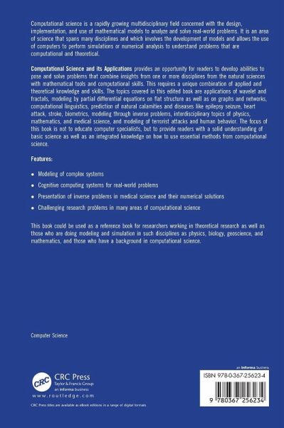 Computational science is a rapidly growing multidisciplinary field concerned with the design, implementation, and use of mathematical models to analyze and solve real-world problems. It is an area of science that spans many disciplines and which involves the development of models and allows the use of computers to perform simulations or numerical analysis to understand problems that are computational and theoretical. Computational Science and its Applications provides an opportunity for readers to develop abilities to pose and solve problems that combine insights from one or more disciplines from the natural sciences with mathematical tools and computational skills. This requires a unique combination of applied and theoretical knowledge and skills. The topics covered in this edited book are applications of wavelet and fractals, modeling by partial differential equations on flat structure as well as on graphs and networks, computational linguistics, prediction of natural calamities and diseases like epilepsy seizure, heart attack, stroke, biometrics, modeling through inverse problems, interdisciplinary topics of physics, mathematics, and medical science, and modeling of terrorist attacks and human behavior. The focus of this book is not to educate computer specialists, but to provide readers with a solid understanding of basic science as well as an integrated knowledge on how to use essential methods from computational science. Features: Modeling of complex systems Cognitive computing systems for real-world problems Presentation of inverse problems in medical science and their numerical solutions Challenging research problems in many areas of computational science This book could be used as a reference book for researchers working in theoretical research as well as those who are doing modeling and simulation in such disciplines as physics, biology, geoscience, and mathematics, and those who have a background in computational science.