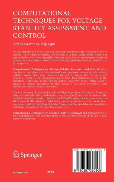 Presenting the continuation and bifurcation-based approaches to assess power system voltage stability, this self-contained manual first provides basic definitions related to voltage stability based on IEEE/CIGRE voltage stability classification. Then the need for robust numerical techniques that are needed to address various aspects of voltage instability is articulated. It presents a tutorial introduction to the basic concepts in bifurcation theory and continuation methods. These methods lead to robust numerical techniques for voltage stability study. The book also provides details related to continuation power flow. In addition, it provides the approach to trace voltage stability boundary for changing system conditions and proposes a uniformed framework that provides computational approaches for both short-term and long-term voltage stability phenomena.