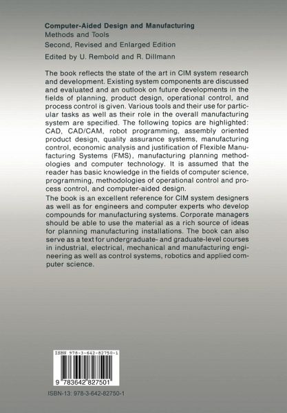 1 CAD Systems and Their Interface with CAM.- 1.1 Introduction.- 1.2 Philosophy of the Application of CAD Systems.- 1.3 Software Structure of CAD Systems.- 1.4 Computer Internal Model.- 1.5 Interfaces of CAD Systems.- 1.6 Integration of the Manufacture Planning Process.- 1.7 Economic Aspects.- 1.8 Conclusion.- 1.9 References.- 1.10 Additional Literature.- 2 Design for Assembly.- 2.1 Introduction.- 2.2 Design for Assembly Philosophy.- 2.3 Determination of the Most Appropriate Process.- 2.4 Re-design for Manual Assembly.- 2.5 Re-design for Automatic Assembly.- 2.6 Robots in Manufacturing.- 2.7 Characteristics of Assembly Robots.- 2.8 Requirements for Robotic Assembly.- 2.9 Classification and Coding for Automatic Parts Handling for Flexible Assembly.- 2.10 Classification and Coding for Automatic Insertion for Flexible Assembly.- 2.11 Conclusions.- 3 Technological Planning for Manufacture - Methodology of Process Planning.- 3.1 Methodology of Process Planning.- 3.2 Development of APT and EXAPT.- 3.3 Techniques of Computer Aided Process Planning.- 3.4 Graphical Simulation of Manufacturing Processes in Process Planning.- 3.5 Systems for Computer Aided Process Planning Including Quality Control.- 3.6 The CAPSY Process Planning System.- 3.7 Planning of Assembly Sequences.- 3.8 N/C Technology.- 3.9 N/C Programming on the Shop Floor Using Graphical Simulation Techniques.- 3.10 Programming of Robots Using Graphical Techniques.- 3.11 Integrated Aspects of Technological Planning.- 3.12 References.- 4 Evolutionary Trends in Generative Process Planning.- 4.1 Introduction.- 4.2 The Principal CAPP Methodologies.- 4.3 Generative Process Planning.- 4.4 Adequacy of the Existing GPP's in the Wake of New Developments.- 4.5 Dynamic GPP Using Pattern Recognition Techniques: A New Concept.-4.6 References.- 5 Design Methodology of Computer Integrated Manufacturing and Control of Manufacturing Units.- 5.1 Introduction.- 5.2 The Need for a Methodology and a Conceptual Model of a CIM System.- 5.3 Conceptual Model of a CIM System.- 5.4 Methods of Designing Production Control Systems.- 5.5 Design of Flexible Manufacturing Systems Using Modelling Techniques and Simulation.- 5.6 The Control of the Manufacturing Unit.- 5.7 GRAI's Approach to Manufacturing Control.- 6 Computing Aids to Plan and Control Manufacturing.- 6.1 Hierarchical Computer Control Equipment for Manufacturing Systems.- 6.2 Hierarchical Control Architecture for Manufacturing Cells.- 6.3 Graphical Simulation Techniques for Planning and Programming of Robot Based Manufacturing Cells.- 6.4 Advanced Computer Architectures (5th Generation).- 6.5 References.- 7 Programming of Robot Systems.- 7.1 Robot Languages in the Eighties.- 7.2 Programming Languages for Manipulation and Vision in Industrial Robots.- 7.3 Programming a Vision System.- 7.4 Towards Automatic Error Recovery in Robot Programs.- 7.5 References.- 8 Present State and Future Trends in the Development of Programming Languages for Manufacturing.- 8.1 Introduction.- 8.2 Programming of Machine Tools.- 8.3 Programming Languages for Robots.- 8.4 Process Control.- 8.5 Commercial Data Processing.- 8.6 Future Trends.- 8.7 References.- 9 Quality Assurance and Machine Vision for Inspection.- 9.1 Introduction.- 9.2 Quality Assurance: Functions, Problems and Realizations.- 9.3 Machine Vision: Inspection Techniques, Mensuration and Robotics.- 9.4 References.- 10 Production Control and Information Systems.- 10.1 Strategies for the Selection of Software Packages in Production.- 10.2 Data Management Requirements for Production Control.- 10.3 PlanningStrategies for the Implementation of Production Control Systems.- 10.4 The Interface Between CAD and Production Control.- 10.5 The Interface Between Production Control and Marketing.- 10.6 Factors Influencing the Acceptance of Production Control Software.- 11 Economic Analysis of Computer Integrated Manufacturing Systems.- 11.1 Introduction.- 11.2 Process Planning.- 11.3 Capacity Analysis Using CAN-Q.- 11.4 Capital and Labour Requirements.- 11.5 Payback, Capital Cost, and Taxes.- 11.6 Cost Comparisons.- 11.7 System Efficiency.- 11.8 Justification and Automation Equipment.- 11.9 Summary.- 11.10 References.- 11.11 Appendix.- Contributors.