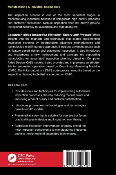 The inspection process is one of the most important steps in manufacturing industries because it safeguards high quality products and customer satisfaction. Manual inspection may not provide the desired accuracy. This book introduces and implements a new methodology and develops the supporting technologies for automated inspection planning based