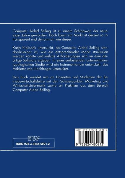 Dieses Buch untersucht, ob Computer Aided Selling standardisierbar ist, wie ein entsprechender Markt strukturiert werden könnte und welche Anforderungen sich an eine derartige Software ergeben.