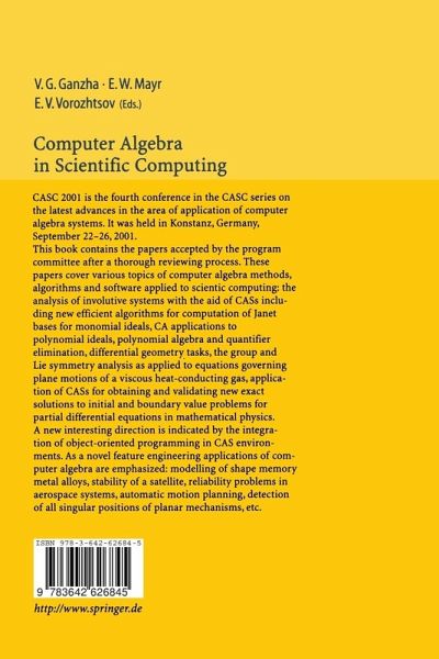 Proceedings of the Fourth International Workshop on Computer Algebra in Scientific Computing, Konstanz, Sept. 22-26, 2001 Herausgegeben von Ganzha, Viktor G.; Mayr, Ernst W.; Vorozhtsov, Evgenii V.