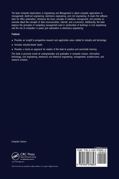 The book Computer Applications in Engineering and Management is about computer applications in management, electrical engineering, electronics engineering, and civil engineering. It covers the software tools for office automation, introduces the basic concepts of database management, and provides an overview about the concepts of data communication, internet, and e-commerce. Additionally, the book explains the principles of computing management used in construction of buildings in civil engineering and the role of computers in power grid automation in electronics engineering.