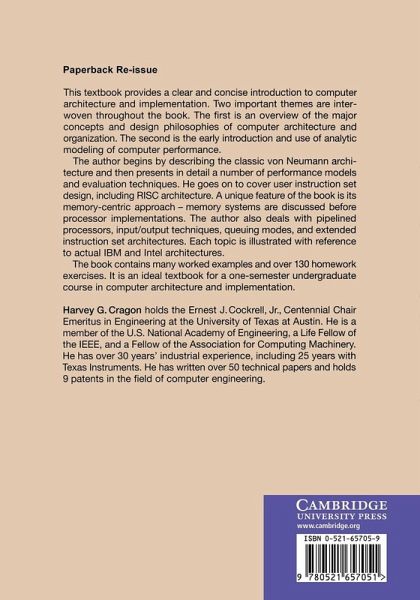 This textbook provides a clear and concise introduction to computer architecture and implementation. Two important themes are interwoven throughout the book. The first is an overview of the major concepts and design philosophies of computer architecture and organization. The second is the early introduction and use of analytic modeling of computer performance. The author begins by describing the classic von Neumann architecture, and then presents in detail a number of performance models and evaluation techniques. He goes on to cover user instruction set design, including RISC architecture. A unique feature of the book is its memory-centric approach - memory systems are discussed before processor implementations. The author also deals with pipelined processors, input/output techniques, queuing modes, and extended instruction set architectures. Each topic is illustrated with reference to actual IBM and Intel architectures. The book contains many worked examples and over 130 homework exercises. It is an ideal textbook for a one-semester undergraduate course in computer architecture and implementation.
