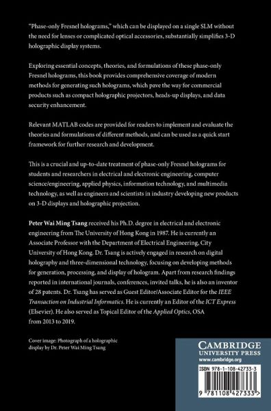 Exploring essential concepts, theories and formulations of phase-only Fresnel holograms, this book provides comprehensive coverage of modern methods for generating such holograms. It is an up-to-date treatment of the topic for engineers in industry, students and researchers in engineering, physics, information technology and multimedia technology.