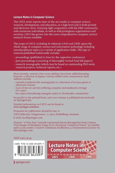 This book constitutes the proceedings of the 20th International Conference on Computer Information Systems and Industrial Management Applications, CISIM 2021, held in Elk, Poland, September 24-26, 2021. The 38 papers presented together with 1 invited speech and 3 abstracts of keynotes were carefully reviewed and selected from 69 submissions. The main topics covered by the chapters in this book are mobile and pervasive computing, machine learning, high performance computing, image processing, industrial management. Additionally, the reader will find interesting papers on computer information systems, biometrics, security systems, and sensor network service. The contributions are organized in the following topical sections: biometrics and pattern recognition applications; computer information systems and security; industrial management and other applications; machine learning and artificial neural networks; modelling and optimization, and others.Chapter 24 "A first step towards automated species recognition from camera trap images of mammals using AI in a European temperate forest" is published open access under a CC BY license (Creative Commons Attribution 4.0 International License).