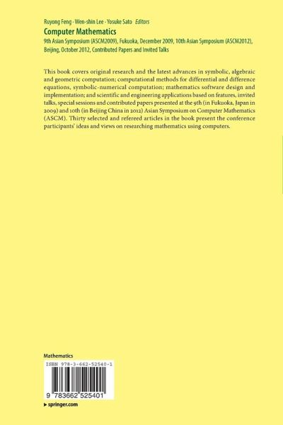 This book covers original research and the latest advances in symbolic, algebraic and geometric computation; computational methods for differential and difference equations, symbolic-numerical computation; mathematics software design and implementation; and scientific and engineering applications based on features, invited talks, special sessions and contributed papers presented at the 9th (in Fukuoka, Japan in 2009) and 10th (in Beijing China in 2012) Asian Symposium on Computer Mathematics (ASCM). Thirty selected and refereed articles in the book present the conference participants' ideas and views on researching mathematics using computers.…mehr