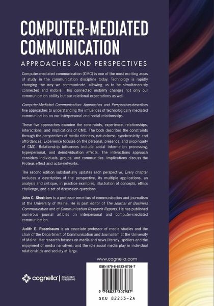 Computer-mediated communication (CMC) is one of the most exciting areas of study in the communication discipline today. Technology is rapidly changing the way we communicate, allowing us to be simultaneously connected and mobile. This connected mobility changes not only our communication ability but our relational expectations as well. Computer-Mediated Communication: Approaches and Perspectives describes five approaches to understanding the influences of technologically mediated communication on our interpersonal and social relationships. These five approaches examine the constraints, experience, relationships, interactions, and implications of CMC. The book describes the constraints through the perspectives of media richness, naturalness, synchronicity, and affordances. Experience focuses on the personal, presence, and propinquity of CMC. Relationship influences include social information processing, hyperpersonal, and deindividuation effects. The interactions approach considers individuals, groups, and communities. Implications discuss the Proteus effect and actor-networks. The second edition substantially updates each perspective. Every chapter includes a description of the perspective, its multiple applications, analysis and critique, in practice examples, illustration of concepts, ethics challenge, and a set of discussion questions.