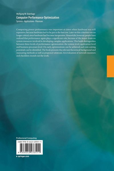 Computing power performance was important at times when hardware was still expensive, because hardware had to be put to the best use. Later on this criterion was no longer critical, since hardware had become inexpensive. Meanwhile, however, people have realized that performance again plays a significant role, because of the major drain on system resources involved in developing complex applications. This book distinguishes between three levels of performance optimization: the system level, application level and business processes level. On each, optimizations can be achieved and cost-cutting potentials can be identified. The book presents the relevant theoretical background and measuring methods as well as proposed solutions. An evaluation of network monitors and checklists rounds out the work.
