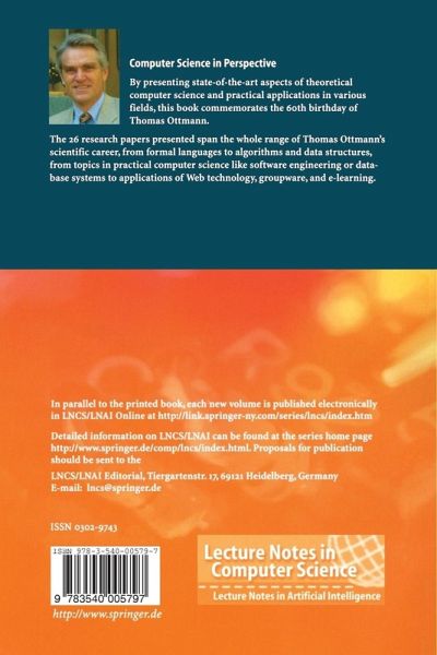 The 26 research papers presented span the whole range of Thomas Ottmann's scientific career, from formal languages to algorithms and data structures, from topics in practical computer science like software engineering or database systems to applications of Web technology, groupware, and e-learning.