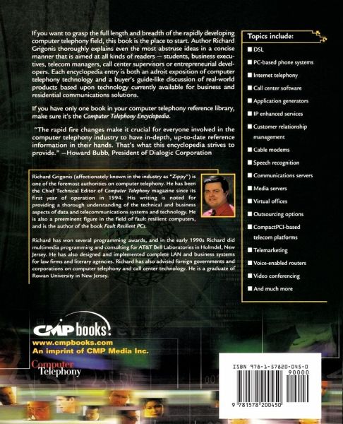 If you want to grasp the full length and breadth of the rapidly developing computer telephony field, this book is the place to start. Author Richard Grigonis thoroughly explains even the most abstruse ideas in a concise manner that is aimed at all kinds of readers -- students, business executives, telecom managers, call center supervisors or entrepreneurial developers. Each encyclopedia entry is both an adroit explanation of computer telephony technology and a buyer's guide-like discussion of real-world products based upon technology currently available for business and residential communications solutions. ;