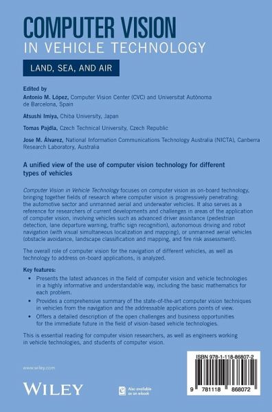 Key features: _ Presents the latest advances in the field of computer vision and vehicle technologies in a highly informative and understandable way, including the basic mathematics for each problem. _ Provides a comprehensive summary of the state of the art computer vision techniques in vehicles from the navigation and the addressable applications points of view. _ Offers a detailed description of the open challenges and business opportunities for the immediate future in the field of vision based vehicle technologies.