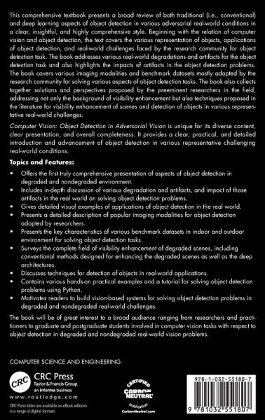This comprehensive text/ book presents a broad review of both traditional (i.e., conventional) and the deep learning aspects of object detection in various adversarial conditions of real-world in a clear, insightful, and highly comprehensive style.