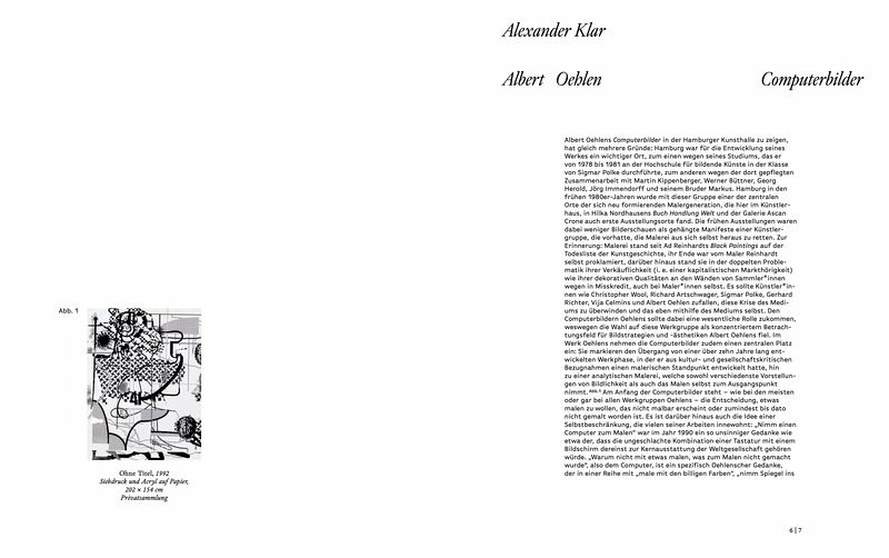 Die Publikation Computerbilder erscheint anlässlich der Ausstellung in der Hamburger Kunsthalle und dokumentiert den gleichnamigen und bislang äußerst selten gezeigten Werkkomplex Albert Oehlens. Mit einem Essay des Direktors Alexander Klar.