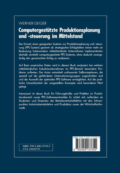 Die geradezu stiirmische Entwicklung auf dem Gebiet der Mikroelektronik hat zu einem drastischen Anstieg des Leistungs-Preis-Verhaltnisses von Computersystemen gefuhrt. Damit erMfnet sich seit einiger Zeit auch fur mittelstandische Industriebetriebe die Moglichkeit, zur Sicherstellung und zum Ausbau ihrer Wettbewerbsfahigkeit eine EDV-gestiitzte Produktionsplanung und -steuerung durchzufuhren. Zwecks Wahrnehmung entsprechender Rationalisierungspotentiale haben viele mittelstandische Unternehmungen inzwischen auch rechnergestiitzte PPS-Systeme unter Riickgriff auf Standardsoftwaresysteme realisiert. Berichte von Anwendern derartiger Systeme lassen jedoch vermuten, daB die Verwendung der betreffenden PPS-Systeme nicht durchweg zu zufriedenstellenden Ergebnissen fuhrt; angestrebte Zielsetzungen wie hohe Termintreue, hohe Flexibilitat, niedrige Lagerbestande, kurze Durchlaufzeiten oder hohe Kapazitatsauslastung werden nur selten zufriedenstellend erreicht. Vor dem aufgezeigten Hintergrund fuhrt Geiger folgende Untersuchung durch: - Auf der Basis empirischer Daten werden diejenigen Gruppen mittelstandischer Industriebetriebe ermittelt, die im Bereich der Produktions planung und -steuerung besonders gro/3e Probleme aufweisen. - Es erfolgt eine Untersuchung der betreffenden Gruppen dahingehend, welche Ursachen fiir die Probeme verantwortlich und welche Ma/3nahmen im PPS Bereich zur ProblemlOsung bzw. Problemreduzierung zu ergreifen sind. Auf den entsprechenden Resultaten aufbauend entwickelt Geiger Sollkonzep tionen fur eine computergestiitzte Produktionsplanung und -steuerung hinsichtlich der Betriebsgruppen, bei denen jeweils ein signifikant hoher Problemverursa chungsgrad der Produktionsplanung und -steuerung auftritt. VI Die erarbeiteten Sollkonzeptionen sind so konzipiert, daB sie rur die betreffenden Betriebe als Grundlage rur ein Pflichtenheft bzw. einen Kriterienkatalog zur Ana lyse und Auswahl von Standardsoftware zur Produktionsplanung und -steuerung herangezogen werden kannen. Die Arbeit diirfte rur Theorie und Praxis gleichermaBen von hoher Bedeutung sein.