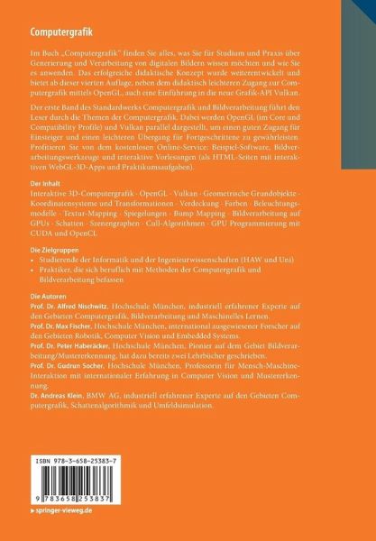 Damit wendet sich dieses umfangreiche Buch über die Computergrafik nicht nur an Studierende der Informatik undden Ingenieurwissenschaften, sondern auch an Praktiker, die sich beruflich mit Methoden der Computergrafik und Bildverarbeitung befassen.