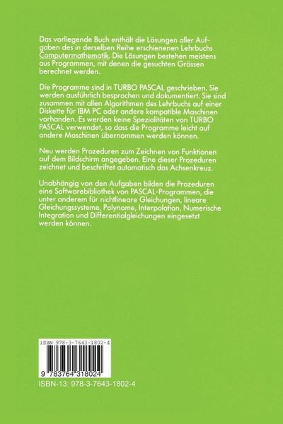 Der vorliegenden Band enthält die Lösungen der Aufgaben des in dersel ben Reihe Programm Praxis erschienenen Lehrbuches 'Computermathema tik'. Die Kapiteleinteilung wurde beibehalten, die Aufgabenstellung wieder holt, um dem Leser ein gleichzeitiges Blättern in beiden Büchern zu ersparen. Für die zur Lösung erforderliche Theorie wird auf das Lehrbuch verwiesen. Bei den Lösungen der Aufgaben handelt es sich meistens um Program me, die in TURBO PASCAL angegeben sind. Bei Programmierubungen ist es sehr wichtig, dass man nicht nur lernt, selbst Programme zu schreiben, sondern auch, andere zu…mehr
