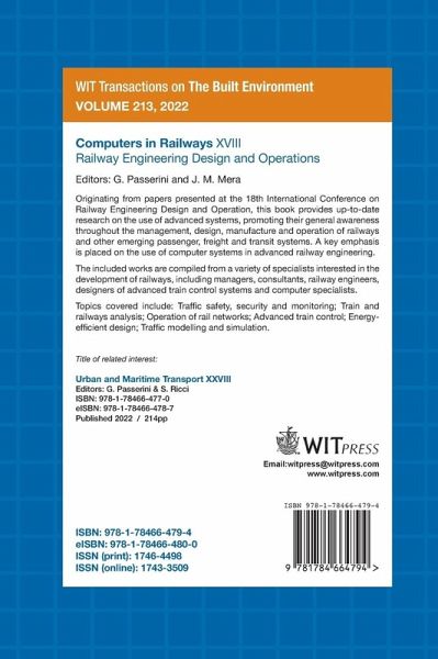 Originating from papers presented at the 18th International Conference on Railway Engineering Design and Operation, this book provides up-to-date research on the use of advanced systems, promoting their general awareness throughout the management, design, manufacture and operation of railways and other emerging passenger, freight and transit systems. A key emphasis is placed on the use of computer systems in advanced railway engineering. The included works are compiled from a variety of specialists interested in the development of railways, including managers, consultants, railway engineers, designers of advanced train control systems and computer specialists. Topics covered include: Advanced train control; Operational quality; Risk management; Planning and policy; Monitoring and maintenance; Energy efficiency and power supply; Signalling and train control systems; Timetabling and rescheduling; Safety and security; Vehicle dynamics; Driverless and automatic train operation; System integration; High-speed technology; Interoperability; Modelling and simulation; Multi-modal integration; Magnetic levitation vehicles; Telecommunications in rail transport; Freight transport; Real-time operations; Ticketing; Singletrack traffic; Track design and maintenance strategies; Intelligent railway systems; Road and rail synergy; Electrical railroad; Railway logistics; Passenger guidance and user behaviour; High-density rails; Railway resilience; Environmental impact and CO2 reduction; IoT applications to railway vehicles; Wheel-rail contact; Adhesion and wear; CBM and new maintenance techniques applied to railway; Hydrogen and battery trains.
