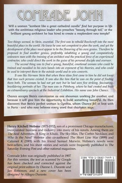 Will a woman "lambent like a great cathedral candle" find her purpose in life with the ambitious religious leader who preaches "beauty through toil," or the brilliant young architect he has hired to create a resplendent new temple? John Chance accepts Herman Stein's commission as one showman working for another, and because it will give him the opportunity to build something staggeringly beautiful. Then Chance discovers that Stein's new helper, Cynthia, is the woman he fell in love with in Paris - and who now believes every word the charlatan says. Webster, a popular author of the early 20th century, wrote short stories and novels with intriguing characters pursuing goals in unusual ways, sometimes in the business world.