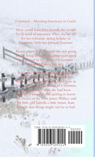 Comraich - meaning sanctuary in Gaelic How could Kate have known she would be in need of sanctuary when she set off for her romantic skiing holiday in Aberdeen, with her partner Dominic. At one point Kate thought she was going to die, lying there in the deep snow until her rescuer in the form of a German Shepherd saved her life. It was the worst winter in Scotland for Thirty years: Kate Johnson could not believe she was going to be stuck here in this ....farm? for the whole of Christmas, especially after what she had been through. However after getting to know the owner of the farm James Wallace and his little girl Isabella a little better, Kate thought that things might not be so bad.
