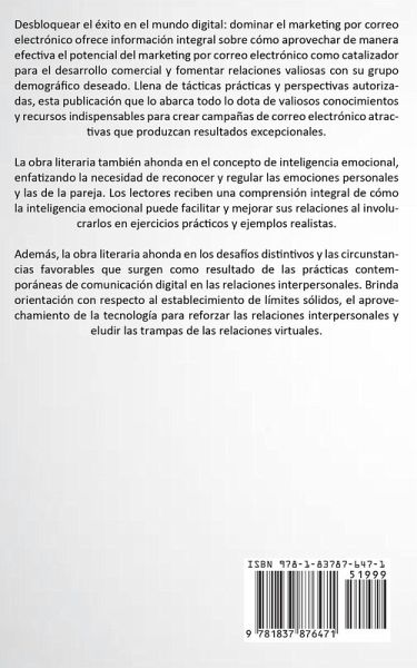 Desbloquear el éxito en el mundo digital: dominar el marketing por correo electrónico ofrece información integral sobre cómo aprovechar de manera efectiva el potencial del marketing por correo electrónico como catalizador para el desarrollo comercial y fomentar relaciones valiosas con su grupo demográfico deseado. Llena de tácticas prácticas y perspectivas autorizadas, esta publicación que lo abarca todo lo dota de valiosos conocimientos y recursos indispensables para crear campañas de correo electrónico atractivas que produzcan resultados excepcionales. La obra literaria también ahonda en el concepto de inteligencia emocional, enfatizando la necesidad de reconocer y regular las emociones personales y las de la pareja. Los lectores reciben una comprensión integral de cómo la inteligencia emocional puede facilitar y mejorar sus relaciones al involucrarlos en ejercicios prácticos y ejemplos realistas. Además, la obra literaria ahonda en los desafíos distintivos y las circunstancias favorables que surgen como resultado de las prácticas contemporáneas de comunicación digital en las relaciones interpersonales. Brinda orientación con respecto al establecimiento de límites sólidos, el aprovechamiento de la tecnología para reforzar las relaciones interpersonales y eludir las trampas de las relaciones virtuales.