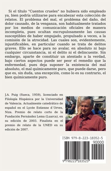 Si el título "Cuentos crueles" no hubiera sido empleado ya, bien podría utilizarse para encabezar esta colección de relatos. El problema del mal, el problema del daño, del dolor causado, de la venganza, son habitualmente tratados por los medios de comunicación oficiales de manera incompleta, pues ocultan escrupulosamente las causas susceptibles de haber empujado, propulsado a veces, a la comisión de la atrocidad. Las cuales son, evidentemente, injustificables, en particular cuando se trata de delitos graves. Ello se hace para no avalar, en absoluto ni bajo cualquier circunstancia, ni el delito ni el delincuente. Sin embargo, aparte de constituir un atentado a la verdad, bajo ciertos aspectos puede ser peor el remedio que la enfermedad, pues deja suponer la existencia del mal absoluto, el mal químicamente puro, que puede darse, pero que es, sin duda, una excepción, como lo es su contrario, el bien químicamente puro.