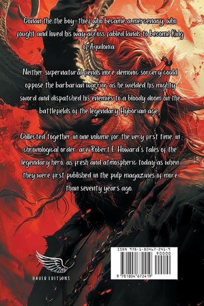 Conan the Barbarian (also known as Conan the Cimmerian) is a fictional sword and sorcery hero who originated in pulp magazines and has since been adapted to books, comics, several films (including Conan the Barbarian and Conan the Destroyer), television programs (animated and live-action), video games, role-playing games, and other media. The character was created by the writer Robert E. Howard in 1932 for a series of fantasy stories published in Weird Tales magazine. This book contains the complete Conan stories in the chronological order of their original publication."The Phoenix on the Sword" (novelette; vol. 20, #6, December 1932) "The Scarlet Citadel" (novelette; vol. 21, #1, January 1, 1933) "The Tower of the Elephant" (novelette; vol. 21, #3, March 1933) "Black Colossus" (novelette; vol. 21, #6, June 1933) "The Slithering Shadow" (novelette; vol. 22, #3, September 1933, alternate title "Xuthal of the Dusk") "The Pool of the Black One" (novelette; vol. 22, #4, October 1933) "Rogues in the House" (novelette; vol. 23, #1, January 1934) "Iron Shadows in the Moon" (novelette; vol. 23, #4, April 1934, published as "Shadows in the Moonlight") "Queen of the Black Coast" (novelette; vol. 23, #5, May 1934) "The Devil in Iron" (novelette; vol. 24, #2, August 1934) "The People of the Black Circle" (novella; vol. 24, #3-5, September-November 1934) "A Witch Shall Be Born" (novelette; vol. 24, #6, December 1934) "Jewels of Gwahlur" (novelette; vol. 25, #3, March 1935, author's original title "The Servants of Bit-Yakin") "Beyond the Black River" (novella; vol. 25, #5-6, May-June 1935) "Shadows in Zamboula" (novelette; vol. 26, #5, November 1935, author's original title "The Man-Eaters of Zamboula") "The Hour of the Dragon" (novel; vol. 26, #6 & vol. 27, #1-4, December 1935, January-April 1936) "Red Nails" (novella; vol. 28, #1-3, July, September, October 1936)