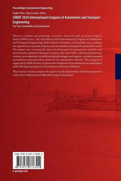 These 3-volume proceedings includes selected and reviewed papers from CONAT 2024 - the 13th edition of the International Congress of Automotive and Transport Engineering, held in Brasov, Romania, in November 2024. Authors are experts from research, industry and universities coming from around the world. The papers are covering the latest developments in automotive vehicles and environment, advanced transport systems and road traffic, advanced powertrain systems, new materials, manufacturing technologies and logistics, accident research and analysis and innovative solutions for automotive vehicles. The congress is organized by SIAR (Society of Automotive Engineers from Romania) in cooperation with SAE International and Transilvania University of Brasov.