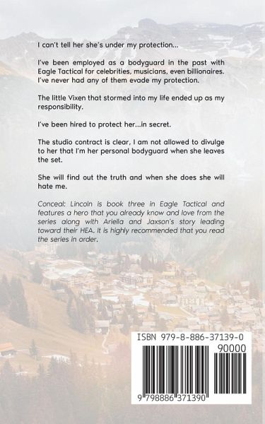 I can't tell her she's under my protection… I've been employed as a bodyguard in the past with Eagle Tactical for celebrities, musicians, even billionaires. I've never had any of them evade my protection. The little Vixen that stormed into my life ended up as my responsibility. I've been hired to protect her…in secret. The studio contract is clear, I am not allowed to divulge to her that I'm her personal bodyguard when she leaves the set. She will find out the truth and when she does she will hate me. Conceal: Lincoln is book three in Eagle Tactical and features a hero that you already know and love from the series along with Ariella and Jaxson's story leading toward their HEA. It is highly recommended that you read the series in order.