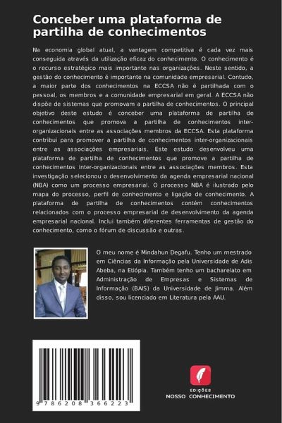 Na economia global atual, a vantagem competitiva é cada vez mais conseguida através da utilização eficaz do conhecimento. O conhecimento é o recurso estratégico mais importante nas organizações. Neste sentido, a gestão do conhecimento é importante na comunidade empresarial. Contudo, a maior parte dos conhecimentos na ECCSA não é partilhada com o pessoal, os membros e a comunidade empresarial em geral. A ECCSA não dispõe de sistemas que promovam a partilha de conhecimentos. O principal objetivo deste estudo é conceber uma plataforma de partilha de conhecimentos que promova a partilha de conhecimentos inter-organizacionais entre as associações membros da ECCSA. Esta plataforma contribui para promover a partilha de conhecimentos inter-organizacionais entre as associações empresariais. Este estudo desenvolveu uma plataforma de partilha de conhecimentos que promove a partilha de conhecimentos inter-organizacionais entre as associações membros. Esta investigação selecionou o desenvolvimento da agenda empresarial nacional (NBA) como um processo empresarial. O processo NBA é ilustrado pelo mapa do processo, perfil de conhecimento e ligação de conhecimento. A plataforma de partilha de conhecimentos contém conhecimentos relacionados com o processo empresarial de desenvolvimento da agenda empresarial nacional. Inclui também diferentes ferramentas de gestão do conhecimento, como o fórum de discussão e outras.