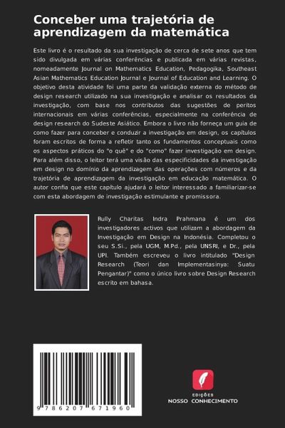 Este livro é o resultado da sua investigação de cerca de sete anos que tem sido divulgada em várias conferências e publicada em várias revistas, nomeadamente Journal on Mathematics Education, Pedagogika, Southeast Asian Mathematics Education Journal e Journal of Education and Learning. O objetivo desta atividade foi uma parte da validação externa do método de design research utilizado na sua investigação e analisar os resultados da investigação, com base nos contributos das sugestões de peritos internacionais em várias conferências, especialmente na conferência de design research do Sudeste Asiático. Embora o livro não forneça um guia de como fazer para conceber e conduzir a investigação em design, os capítulos foram escritos de forma a refletir tanto os fundamentos conceptuais como os aspectos práticos do "o quê" e do "como" fazer investigação em design. Para além disso, o leitor terá uma visão das especificidades da investigação em design no domínio da aprendizagem das operações com números e da trajetória de aprendizagem da investigação em educação matemática. O autor confia que este capítulo ajudará o leitor interessado a familiarizar-se com esta abordagem de investigação estimulante e promissora.