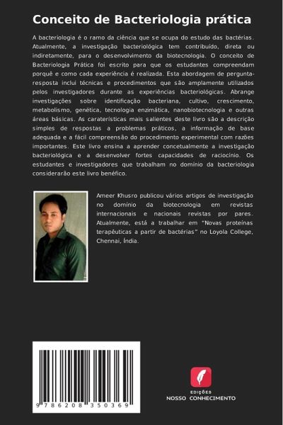 A bacteriologia é o ramo da ciência que se ocupa do estudo das bactérias. Atualmente, a investigação bacteriológica tem contribuído, direta ou indiretamente, para o desenvolvimento da biotecnologia. O conceito de Bacteriologia Prática foi escrito para que os estudantes compreendam porquê e como cada experiência é realizada. Esta abordagem de pergunta-resposta inclui técnicas e procedimentos que são amplamente utilizados pelos investigadores durante as experiências bacteriológicas. Abrange investigações sobre identificação bacteriana, cultivo, crescimento, metabolismo, genética, tecnologia enzimática, nanobiotecnologia e outras áreas básicas. As caraterísticas mais salientes deste livro são a descrição simples de respostas a problemas práticos, a informação de base adequada e a fácil compreensão do procedimento experimental com razões importantes. Este livro ensina a aprender concetualmente a investigação bacteriológica e a desenvolver fortes capacidades de raciocínio. Os estudantes e investigadores que trabalham no domínio da bacteriologia considerarão este livro benéfico.