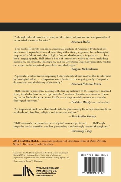 Genetic manipulation. Designer babies. Prenatal screening. The genomic revolution. Cutting-edge issues in reproductive bioethics grab our attention almost daily, prompting strong responses from various sides. As science advances and comes ever closer to "perfect" procreation and "perfectible" babies, controversy has become a constant in bioethical discussion. Amy Laura Hall seeks out the genesis of such issues rather than trying to divine their future. Her disturbing finding is that mainline Protestantism is complicit in the history and development of reproductive biotechnology. Through analysis of nearly 150 images of the family in the mainstream media in the twentieth century, Hall argues that, by downplaying the gratuity of grace, middle-class Protestants, with American culture at large, have implicitly endorsed the idea of justification through responsibly planned procreation. A tradition that should have welcomed all persons equally has instead fostered a culture of "carefully delineated, racially encoded domesticity." The research in Conceiving Parenthood is new, the theory provocative, and the illustrations exceptional. The book is replete with photos and advertisements from popular magazines from the 1930s through the 1950s—Parents', Ladies' Home Journal, National Geographic, and so on. Hall's analysis of these ads is startling. Her goal, however, is not simply to startle readers but to encourage new conversations within communities of faith&mdashconversations enabling individuals, couples, congregations, even entire neighborhoods to conceive of parenthood in ways that make room for families and children who are deemed to be outside the proper purview of the right sorts of families.
