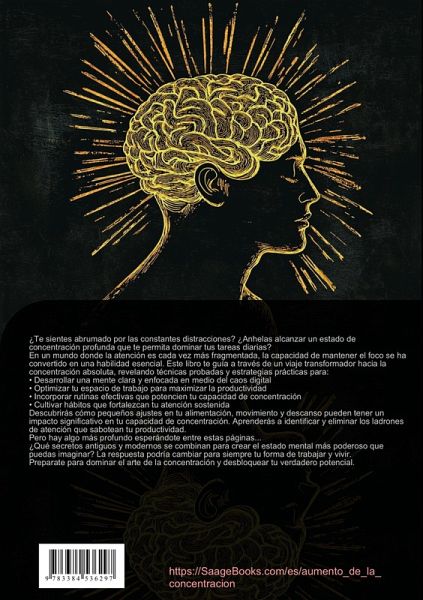 En un mundo lleno de distracciones constantes, la capacidad de mantener una concentración absoluta se ha convertido en una habilidad fundamental. Este libro te guía a través de un viaje transformador hacia el dominio de tu atención y conciencia.Descubre cómo desarrollar una atención intensa mediante técnicas probadas y estrategias prácticas, organizadas en cinco áreas principales:1. Fundamentos Mentales:- Cultivo de la consciencia y mindfulness- Técnicas de respiración y ejercicios mentales- Métodos para minimizar distracciones2. Aspectos Físicos:- Optimización del movimiento y postura corporal- Nutrición para potenciar la concentración- Gestión efectiva del descanso y la energía3. Organización del Espacio de Trabajo:- Diseño ergonómico del entorno- Estructuración temporal eficiente- Control de factores ambientales4. Entrenamiento Diario:- Ejercicios prácticos de atención- Establecimiento de rutinas efectivas- Manejo del estrés y prioridades5. Trabajo Concentrado:- Métodos de organización de tareas- Técnicas de autorregulación- Estrategias para optimizar el rendimientoAprende a dominar tu concentración y descubre el poder de la atención intensa para mejorar significativamente tu productividad y claridad mental. Cada capítulo incluye ejercicios prácticos y visualizaciones que facilitan la comprensión y aplicación de los conceptos presentados.Este libro ha sido creado utilizando tecnologías innovadoras como la Inteligencia Artificial y herramientas especialmente desarrolladas, por ejemplo, en la búsqueda de ideas, la investigación, la escritura, la edición, el control de calidad y el diseño de ilustraciones decorativas.De esta manera, queremos ofrecerle una experiencia de lectura especialmente coherente, moderna y de mayor calidad.