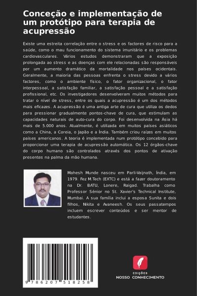 Existe uma estreita correlação entre o stress e os factores de risco para a saúde, como o mau funcionamento do sistema imunitário e os problemas cardiovasculares. Vários estudos demonstraram que a exposição prolongada ao stress e as doenças com ele relacionadas são responsáveis por um aumento dramático da mortalidade nos países ocidentais. Geralmente, a maioria das pessoas enfrenta o stress devido a vários factores, como o ambiente físico, o fator organizacional, o fator interpessoal, a satisfação familiar, a satisfação pessoal e a satisfação profissional, etc. Os investigadores desenvolveram muitos métodos para tratar o nível de stress, entre os quais a acupressão é um dos métodos mais eficazes. A acupressão é uma antiga arte de cura que utiliza os dedos para pressionar gradualmente pontos-chave de cura, que estimulam as capacidades naturais de auto-cura do corpo. Foi desenvolvida na Ásia há mais de 5.000 anos. Atualmente, é utilizada em muitos países asiáticos como a China, a Coreia, o Japão e a Índia. Também criou raízes em muitos países americanos. A teoria é implementada num protótipo concebido para proporcionar uma terapia de acupressão automática. Os 12 órgãos-chave do corpo humano são controlados através dos pontos de ativação presentes na palma da mão humana.