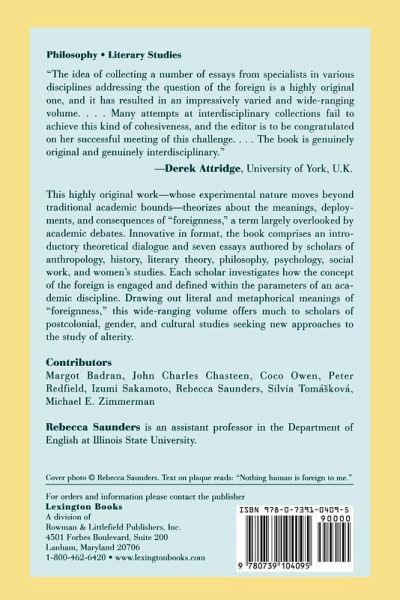 The idea of collecting a number of essays from specialists in various disciplines addressing the question of the foreign is a highly original one, and has resulted in an impressively varied and wide-ranging volume... Many attempts at interdisciplinary collections fail to achieve this kind of cohesiveness combined with variety, and the editor is to be congratulated on her successful meeting of this challenge...The book is genuinely original and genuinely interdiscipinary. -- Derek Attridge, The University of York, UK