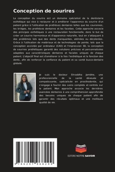 La conception du sourire est un domaine spécialisé de la dentisterie esthétique qui vise à restaurer et à améliorer l'apparence du sourire d'un patient grâce à l'utilisation de prothèses dentaires telles que les couronnes, les bridges, les prothèses dentaires et les facettes. Cette approche associe des principes esthétiques à une restauration fonctionnelle, dans le but de créer un sourire harmonieux et d'apparence naturelle, tout en s'attaquant à des problèmes tels que des dents manquantes, abîmées ou décolorées. Grâce à l'utilisation de matériaux et de technologies de pointe, tels que la conception assistée par ordinateur (CAO) et l'impression 3D, la conception de sourires prothétiques garantit des solutions précises et personnalisées adaptées aux caractéristiques dentaires et faciales uniques de chaque patient. L'objectif final est d'améliorer à la fois l'esthétique et la fonction des dents, afin de renforcer la confiance du patient et sa santé bucco-dentaire globale.