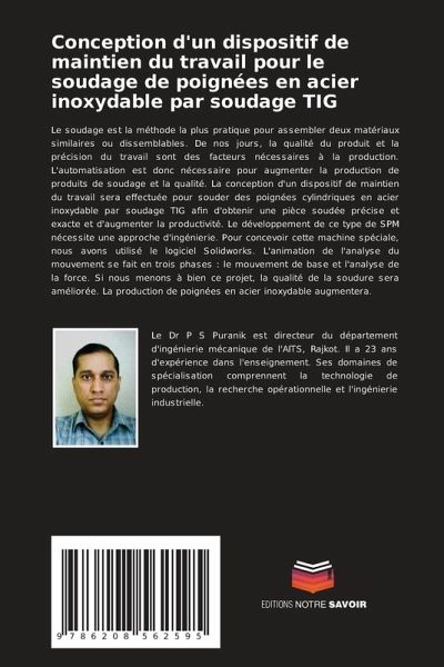 Le soudage est la méthode la plus pratique pour assembler deux matériaux similaires ou dissemblables. De nos jours, la qualité du produit et la précision du travail sont des facteurs nécessaires à la production. L'automatisation est donc nécessaire pour augmenter la production de produits de soudage et la qualité. La conception d'un dispositif de maintien du travail sera effectuée pour souder des poignées cylindriques en acier inoxydable par soudage TIG afin d'obtenir une pièce soudée précise et exacte et d'augmenter la productivité. Le développement de ce type de SPM nécessite une approche d'ingénierie. Pour concevoir cette machine spéciale, nous avons utilisé le logiciel Solidworks. L'animation de l'analyse du mouvement se fait en trois phases : le mouvement de base et l'analyse de la force. Si nous menons à bien ce projet, la qualité de la soudure sera améliorée. La production de poignées en acier inoxydable augmentera.